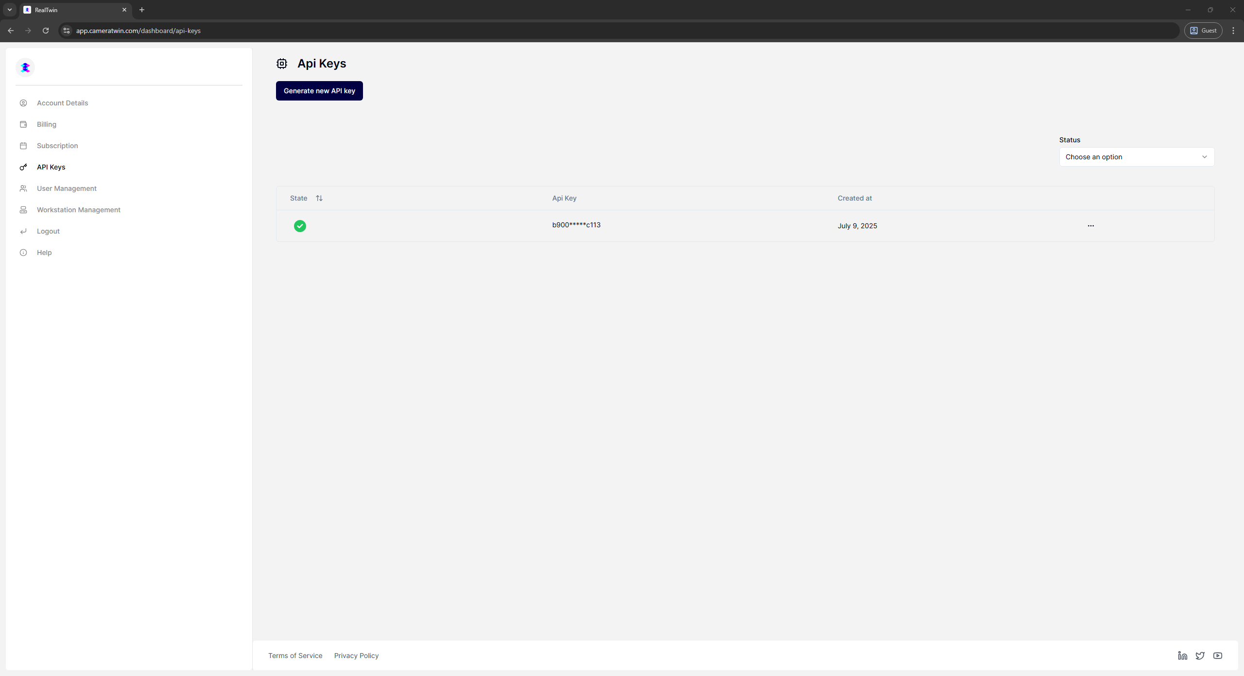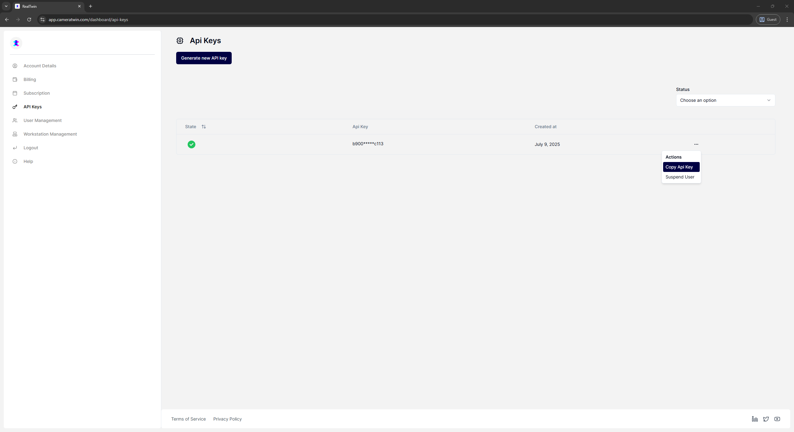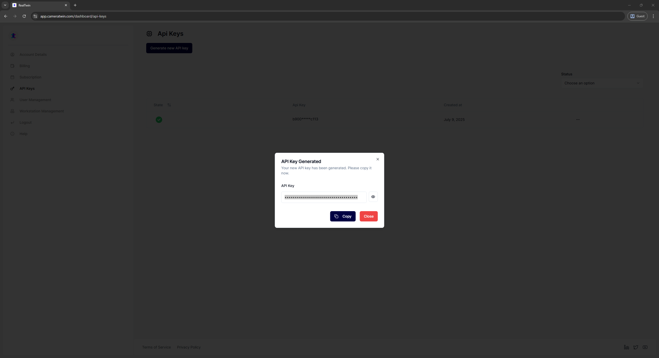 ### Step 2: Go to the [API Key Section](https://app.cameratwin.com/dashboard/api-keys)