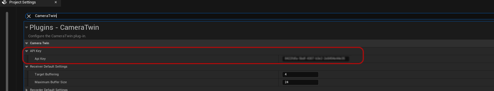 ### Step 4: Open the Unreal Engine Project and insert the API Key to the Project Settings->CameraTwin